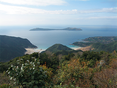ながさき島たより父ヶ岳登山 (五島) 標高461m、五島列島最高峰の「父ヶ岳」に登った。その山頂から高浜と頓泊の海岸を望むと、眼下には、白い砂浜に縁どられたエメラルドグリーンの美しい海が広がる。父ヶ岳に登るなら、いくつかの団体が企画するトレッキングツアーに参加するのがオススメ。安全性はもちろん、希少な動植物についての説明もしてくれる。 午前9時40分、七...