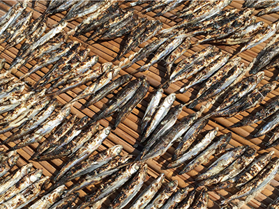 ながさき島たよりあご焼き(上五島) 9月、彼岸を過ぎた頃、北風が吹いてくると「あご焼き」が始まります。我が家もこの頃に港に飛び魚が入ったと連絡があると、玄関先にずらりと七輪を並べて炭に火をおこし、あご焼きの準備をします。トロ箱いっぱいの飛び魚を掬い、大きさを選別し、中ぐらいの飛び魚を金網の魚焼きにのせ、七輪で焼きます。そして腹わたが焼けると、広げた巻き...