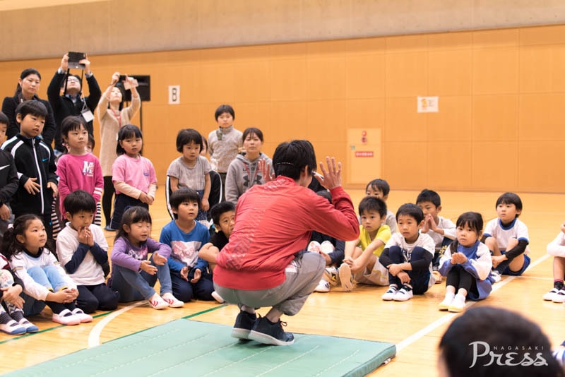 現在は日本初のプロ体操選手としてリンガーハットと契約し、体操の普及に貢献されていますが、そんな内村選手の交流イベントが地元諫早で開催されるということで、多数の観客や報道陣が会場に詰めかけました👪
