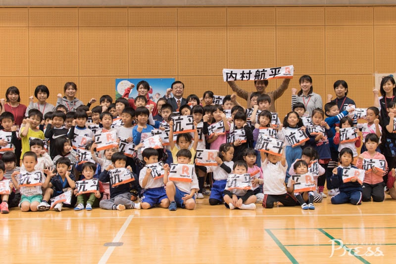 その後、親御さんたちが見守る中、子供たちは今か今かと内村選手の登場を待ちます。