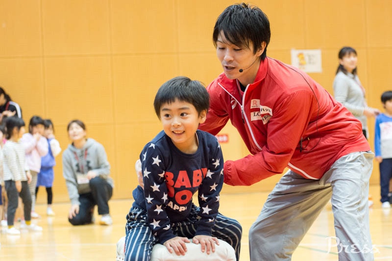 マット運動と同様、内村選手が子どもたちを優しくサポート。体操教室の先生方も補助に付き、跳び箱を飛べない子どもたちも、飛べるイメージが掴めたのではないでしょうか。