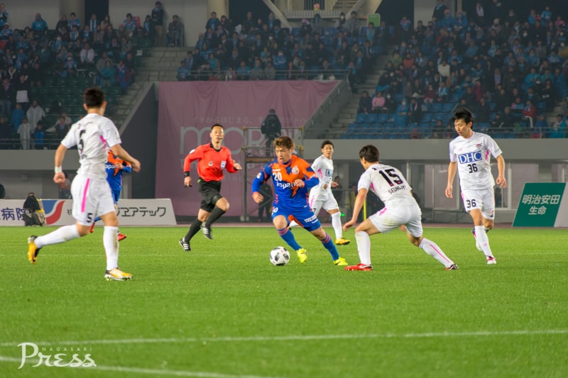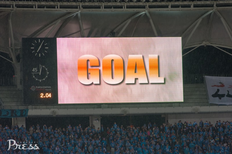 後半60分、左サイドからのクロスボールを長崎の田上選手が逆サイドに弾き返すも、今度は右サイドにオーバーラップしてきた鳥栖の選手に中央に折り返され、最後はスペースに走り込んできた高橋秀人選手のシュートでゴール。