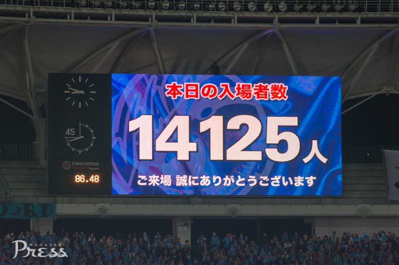 天気はあいにくの雨。吐く息も白さが目立つピッチコンディションでしたが、会場には14125人のサポーターが詰めかけました。
