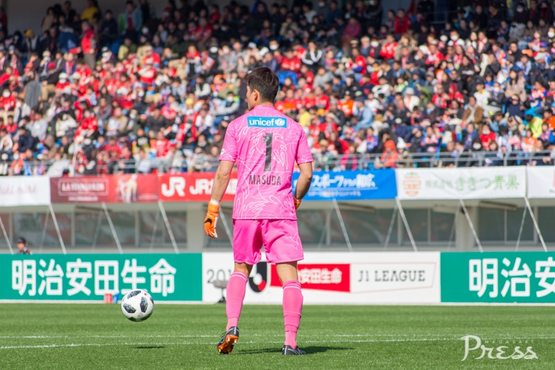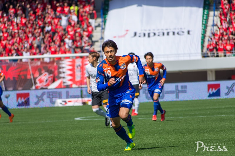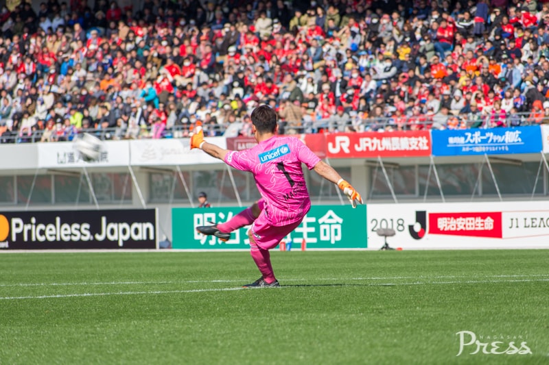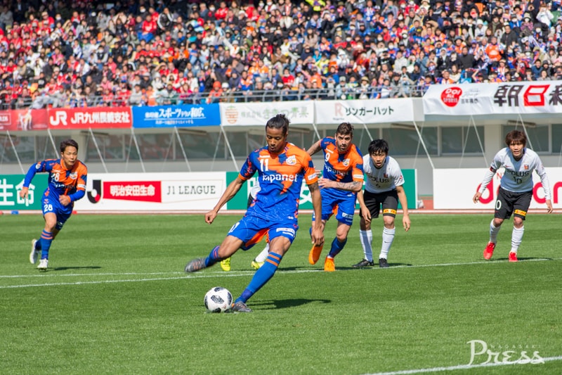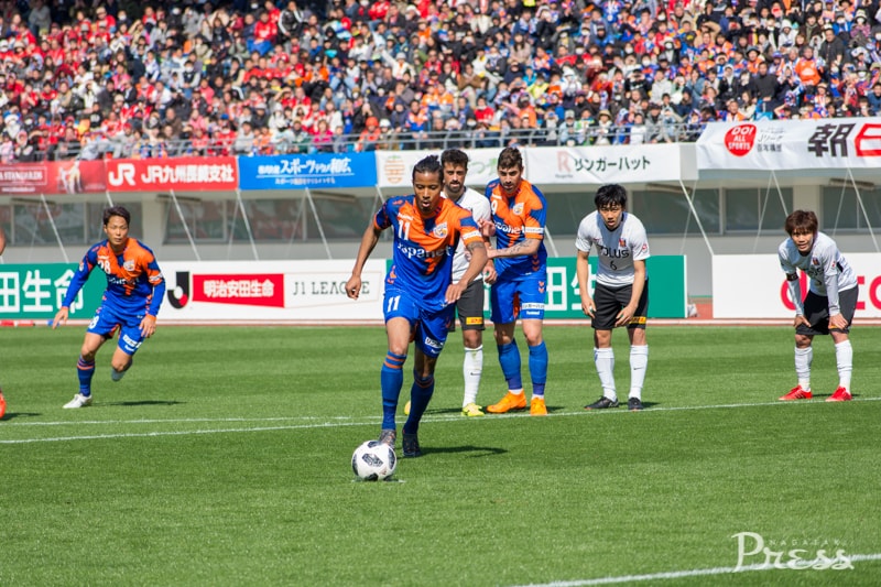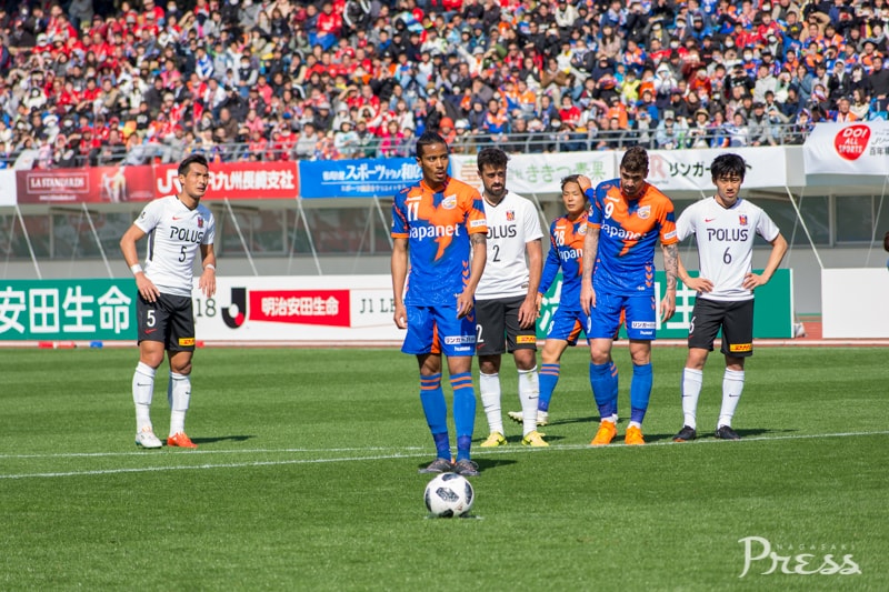 キッカーは前節でゴールを決めた鈴木武蔵選手。大役を任されます。