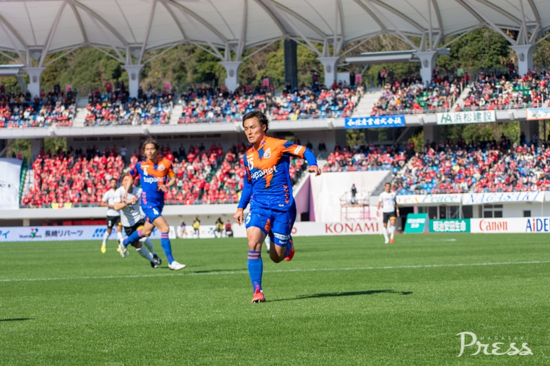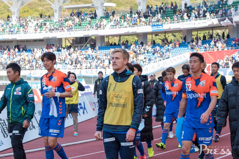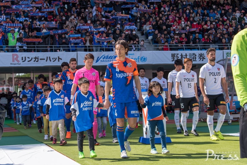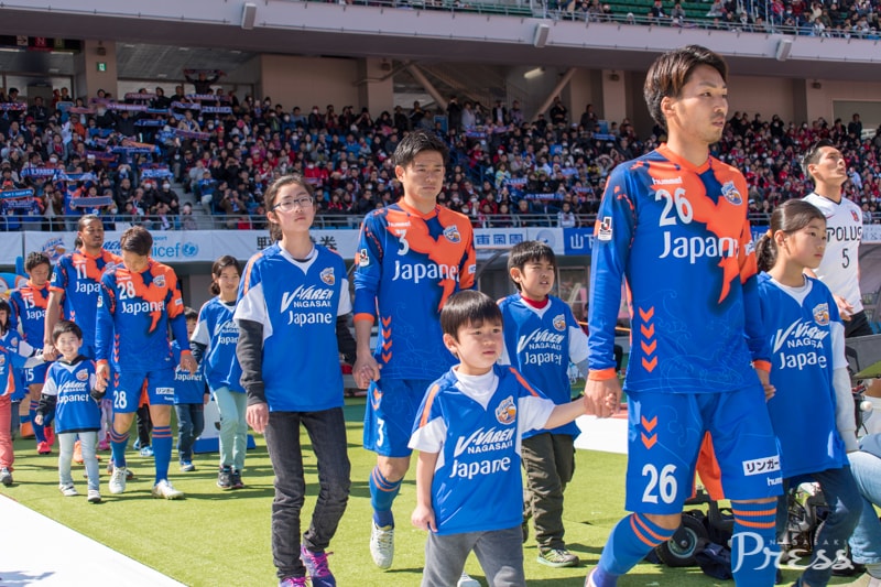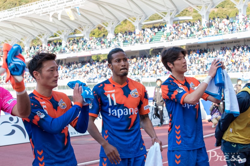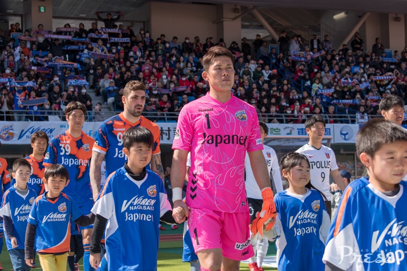 そんな中での選手入場でしたが、V・ファーレン長崎の選手に硬い表情はなく、1戦1戦集中を切らさず戦いに挑もうとする冷静さを感じました。