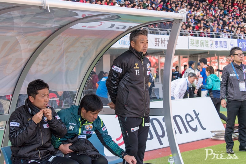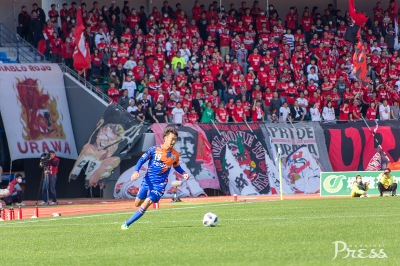 攻撃の方はファンマ選手のポストプレーを軸に、鈴木武蔵選手や翁長選手、飯尾選手が裏への抜け出しを狙う場面が多く見られました。