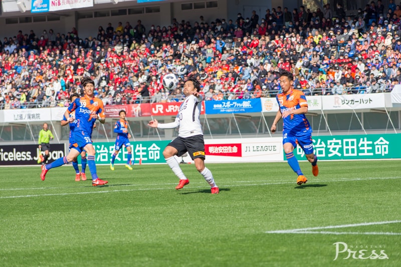 この日は新加入のチェ・キュベック選手がリーグ戦初スタメンで出場し、守備を固めます。