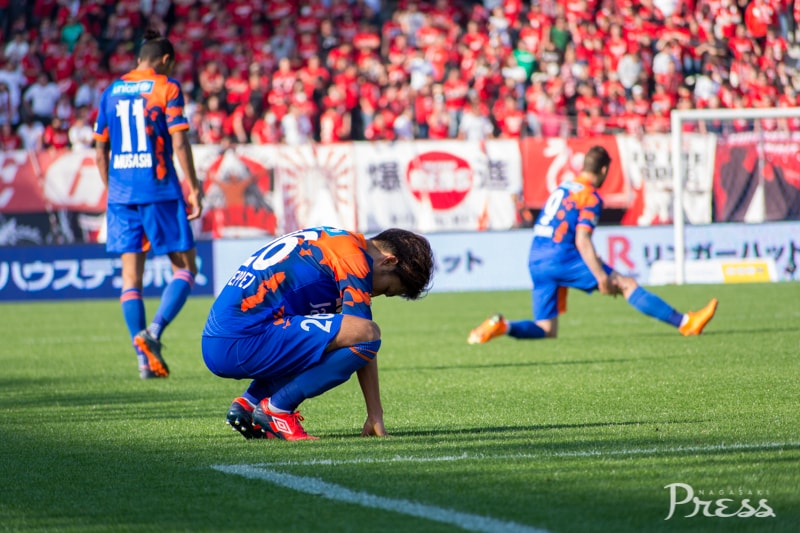 その後も浦和の猛攻が続きましたが、チェ・キュベック選手と徳永選手、そして高杉選手に変わって入った田上選手が身を挺してゴールを守ります。