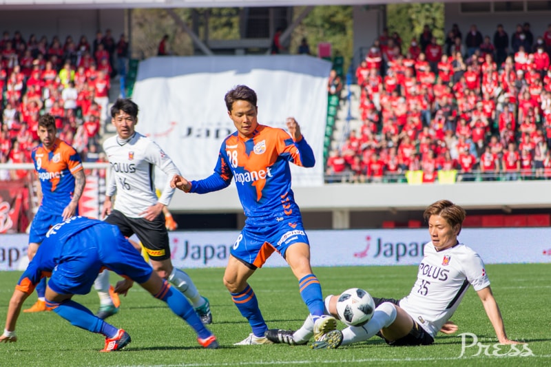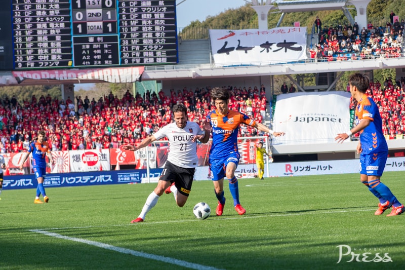 昨シーズンのリーグ戦で20得点をあげた興梠選手が裏に抜け出し、度々ゴールを脅かします。