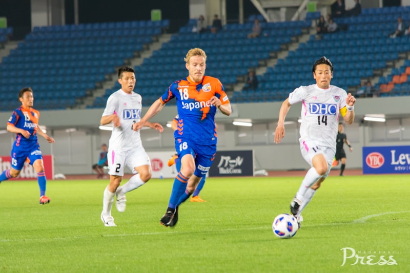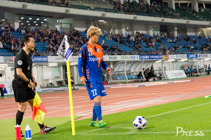 ピッチ中央でボールを奪った中村選手がベン・ハロラン選手にスルーパス。そのままキーパーと1対1になり、ループシュートを狙いますがこれは惜しくもゴールキーパーに阻まれます。