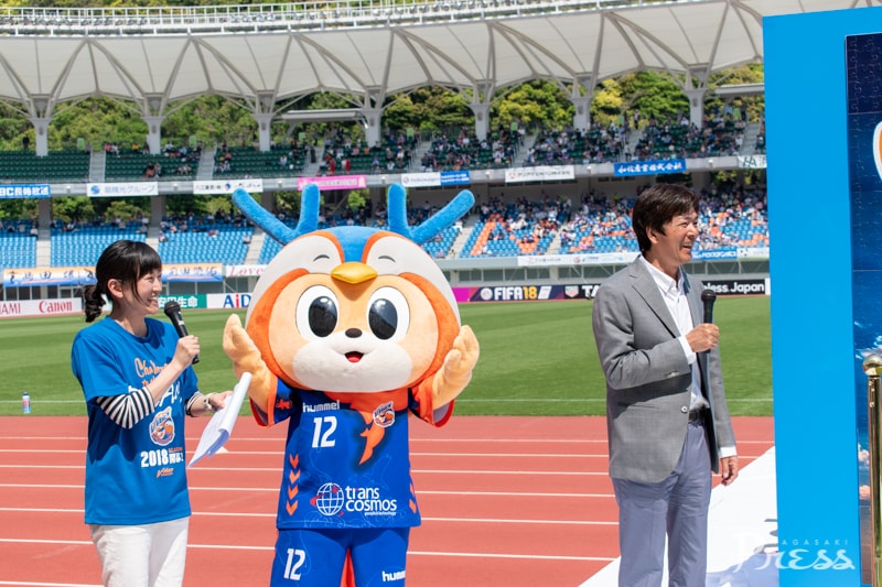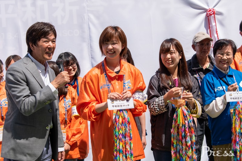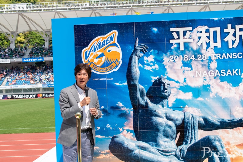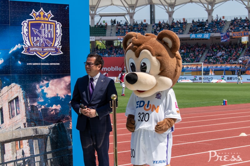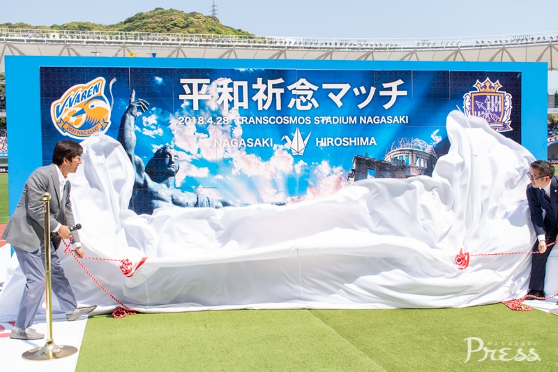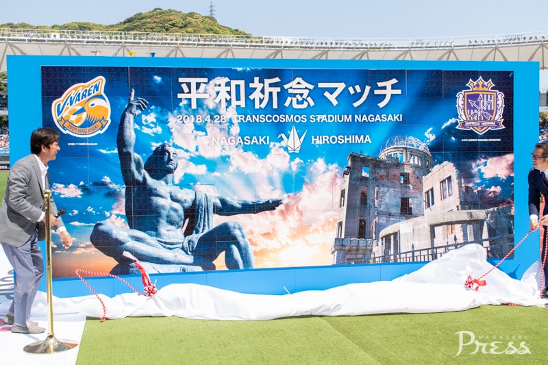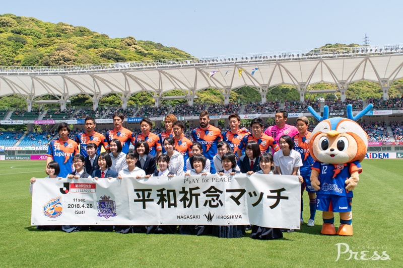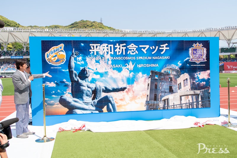 長崎と広島が被爆地という共通点から『平和祈念マッチ』と銘打ったこの試合。千羽鶴を折るコーナーの設置や、平和への想いを込めたバルーンリリースなど、特別な取り組みがありました。