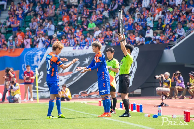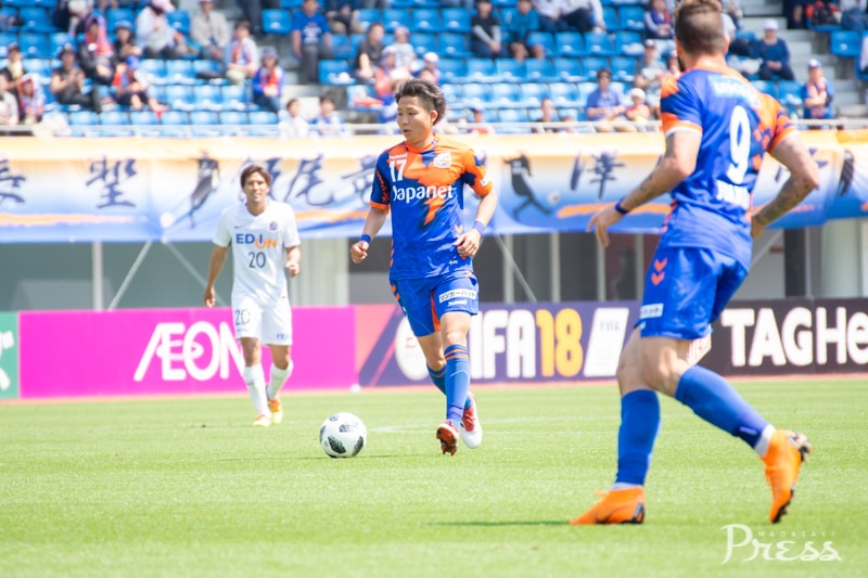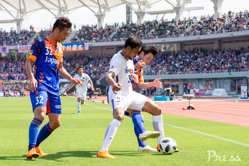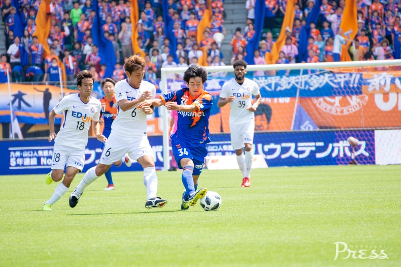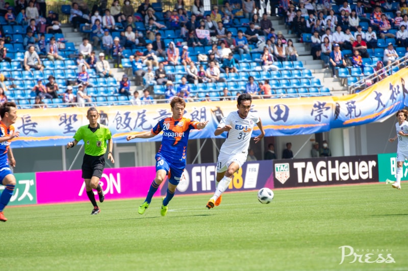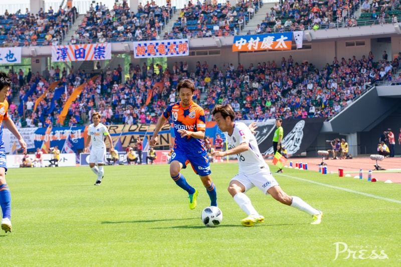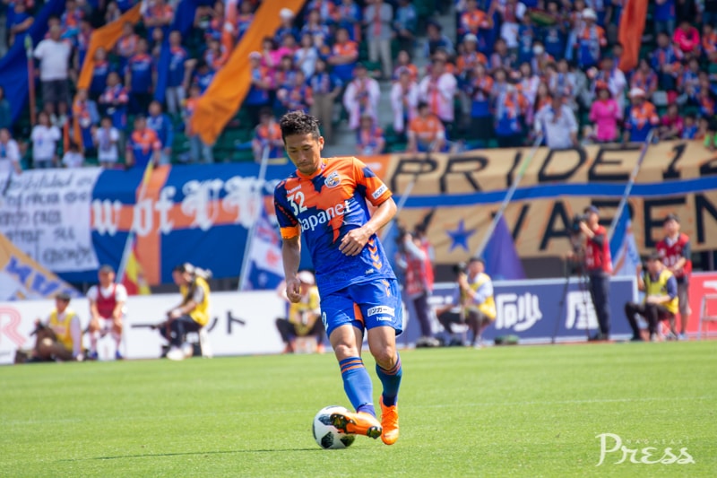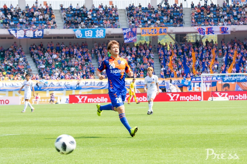 リーグ戦初出場となる新里選手ですが、動きに固さはなく、ボランチのポジションで空いたスペースに頻繁に顔を出し、攻撃にリズムを作ります。