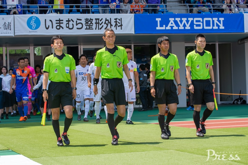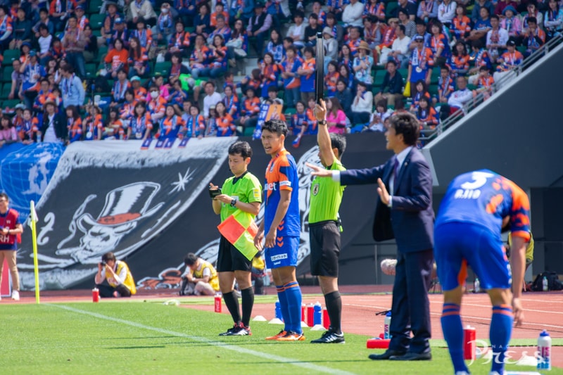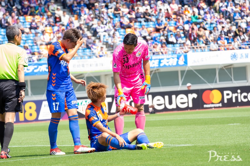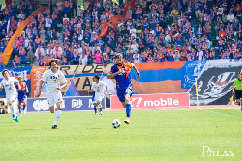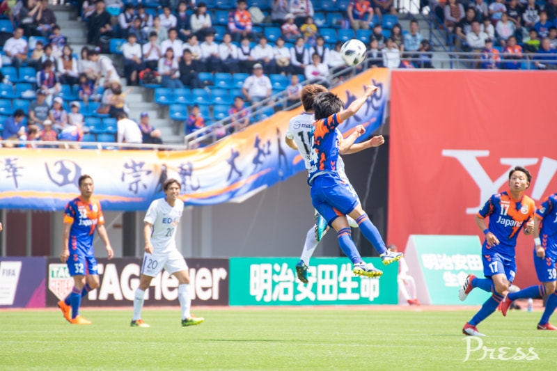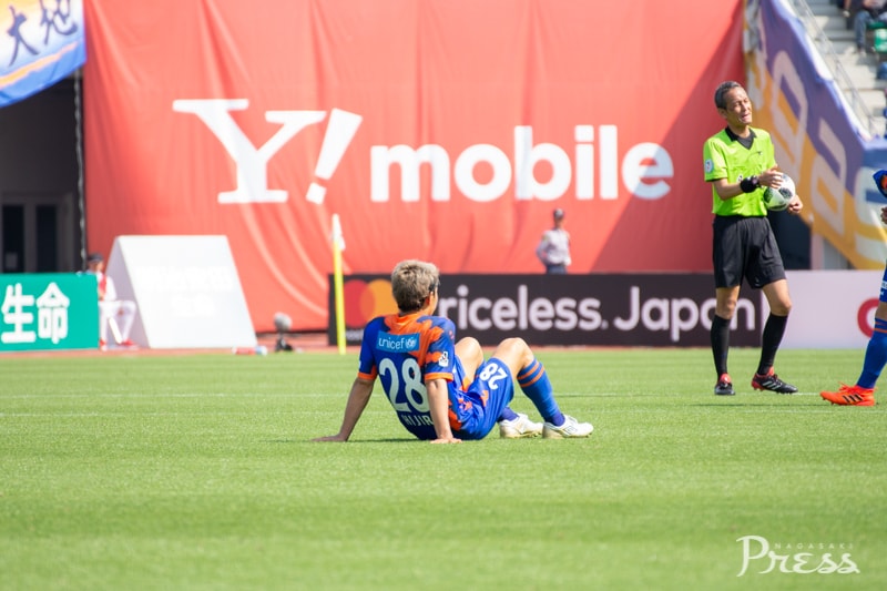 前半1分、ヘディングの競り合いでファンマ選手が倒され、FKを獲得します。