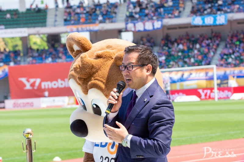 試合前の対談に続き、長崎の髙田社長と広島の山本社長が登場され、平和への想いを語られました。