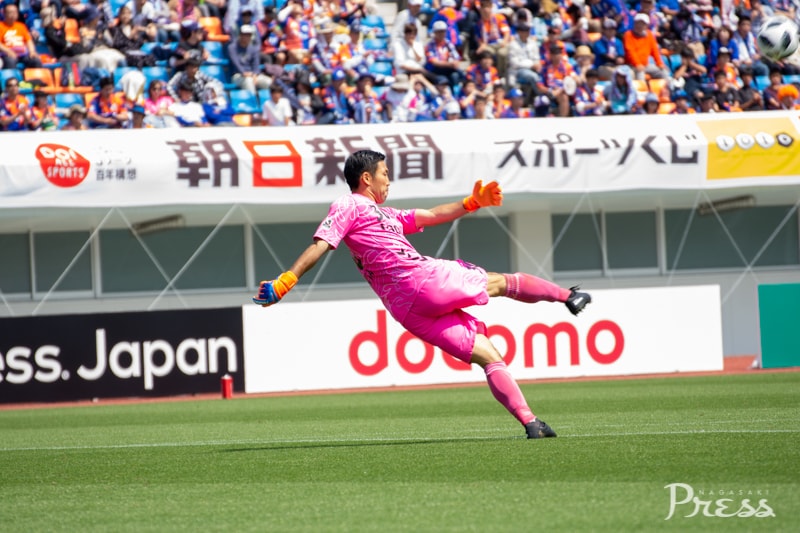 こちらもGK正面で徳重選手がキャッチします。