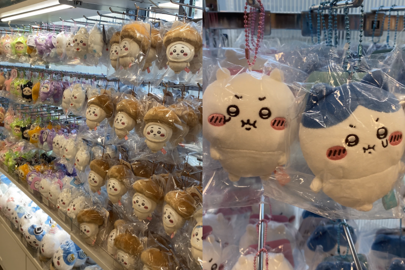 その隣にはぬいぐるみがずらり。表情ちがい・サイズちがいが豊富で、どの子をお迎えするか本気で迷っちゃいます。