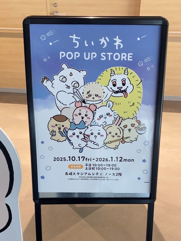 ちいかわ POP UP STORE オープン初日に行ってきました! 会場は長崎スタジアムシティ ノース2階。