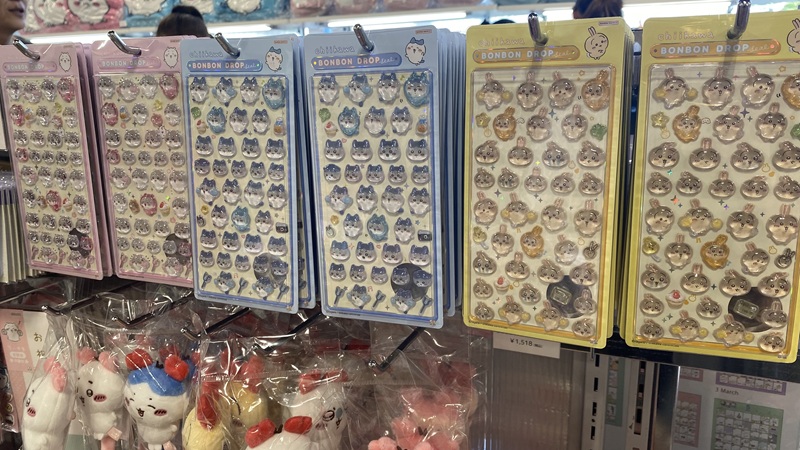 他にも、Tシャツやバッグ、ハンカチといった衣料品から、マグ・お弁当箱などのデイリー雑貨、シールやノート、ペンなどのステーショナリー、キャラ撮りスティックやキーホルダーの小物、ぬい・マスコット、ブラインド商品、そしておやつ・スナック系フードまで勢ぞろい。
