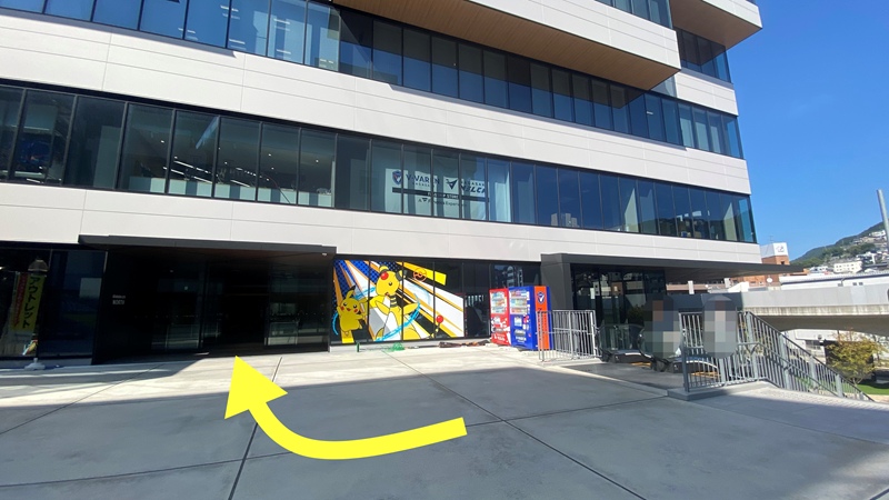 赤と青の自動販売機が目印!この入口から入ると、ちいかわパネルがお出迎え。この時点でテンションUP!