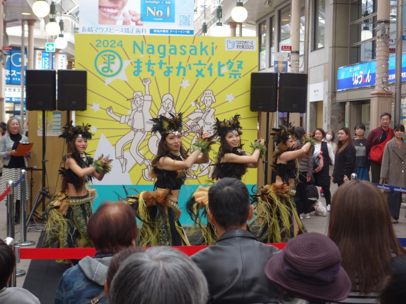 また「まちなか劇場」では浜町のお店や長崎水道の物語が上演され、平和を願う折り鶴アートの展示も行われる。
