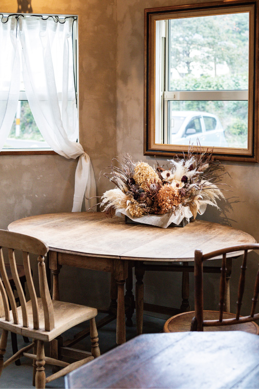 カフェのオーナー永谷桃香さんのお母さま・かおりさん曰く、諫早市内の〈Cafe Junnosuke〉が大好きで、同じようなアンティークな雰囲気でお店づくりをしたかったのだとか。