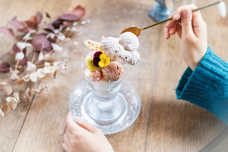 内容は日によって変更がありますが、米粉のガトーショコラに、自家製グラノーラ、非焙煎のカカオを使ったローチョコレート、ジェラートなどを使用し、甘みや酸味などいろいろな味わいが楽しめます。