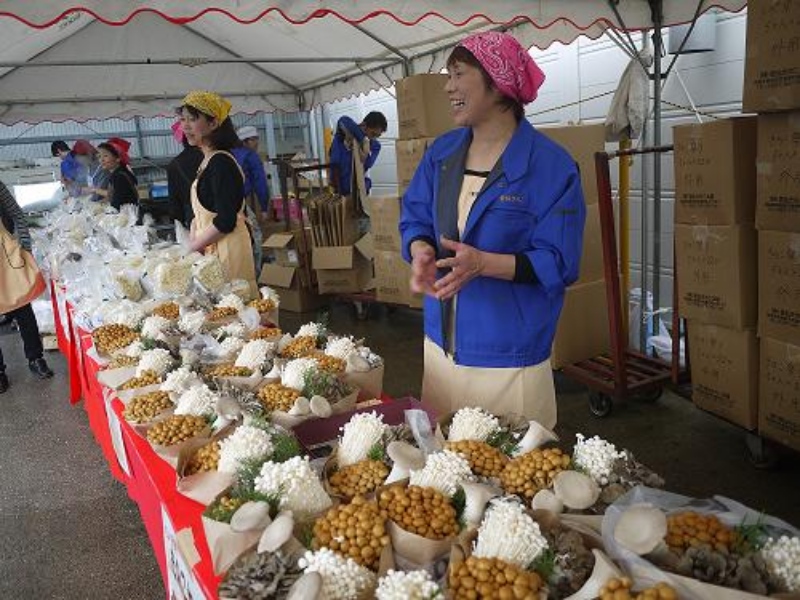養々麺や規格外商品が特別価格で手に入るほか、自慢のきのこを袋いっぱいに詰めてお持ち帰りできる“きのこ詰め放題”も実施。