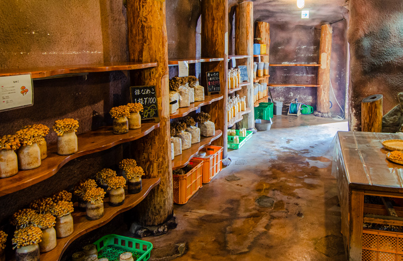 棚には、雲仙きのこ本舗が誇る立派なきのこたちがズラリ。