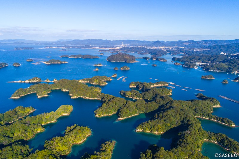 「九⼗九島」と⾔う名前ですが、島の数はなんと208。島の密度は⽇本⼀とも⾔われているんですよ。
