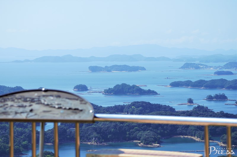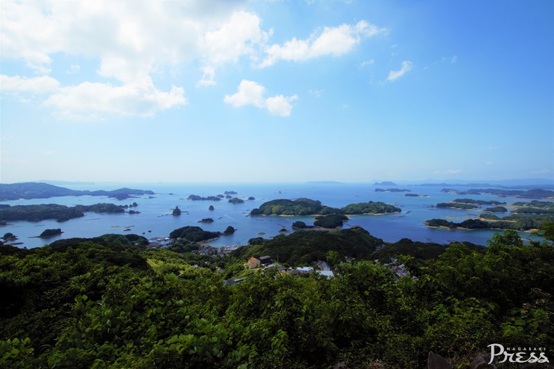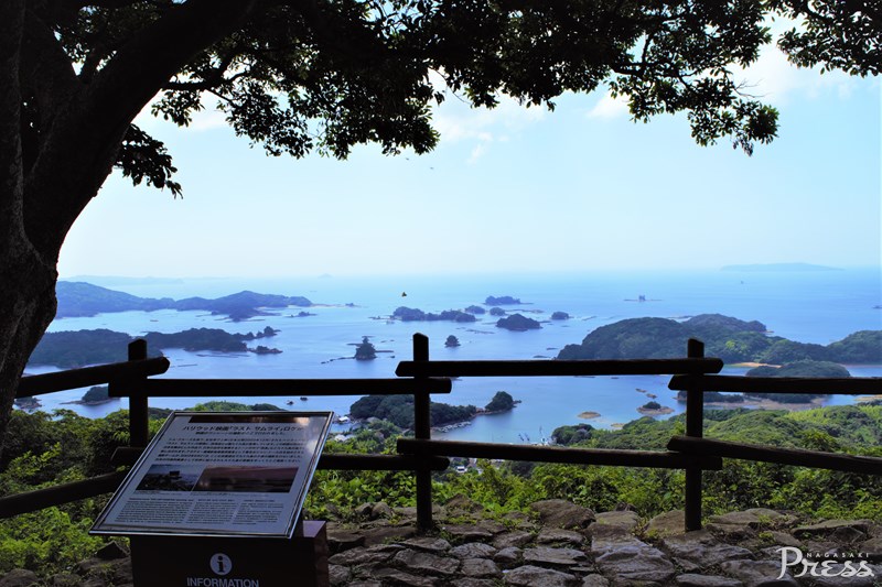 その中央部にある展海峰(てんかいほう)は、九⼗九島南部を⾒渡す180度のパノラマビューが楽しめると、佐世保でも1,2を争う⼈気展望スポット。