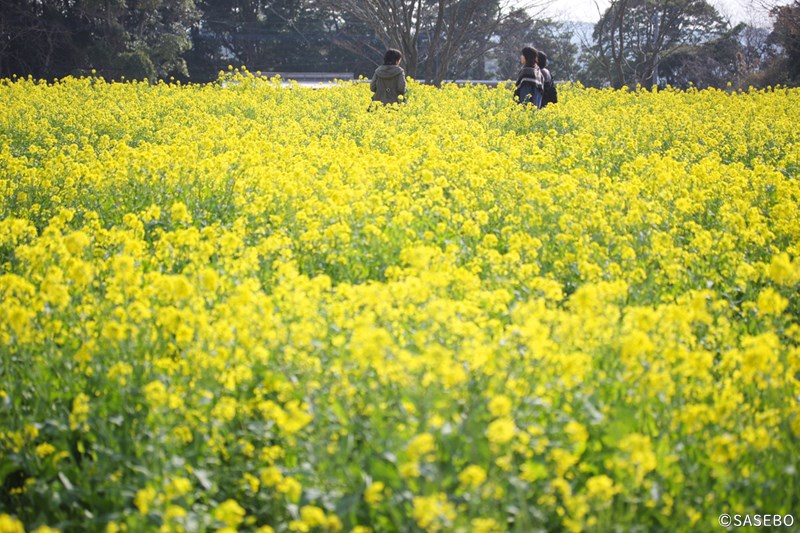 展望台の下部には、春(3⽉下旬〜4⽉上旬)は菜の花、秋(10⽉中旬〜10⽉下旬)はコスモスが咲き誇ります。