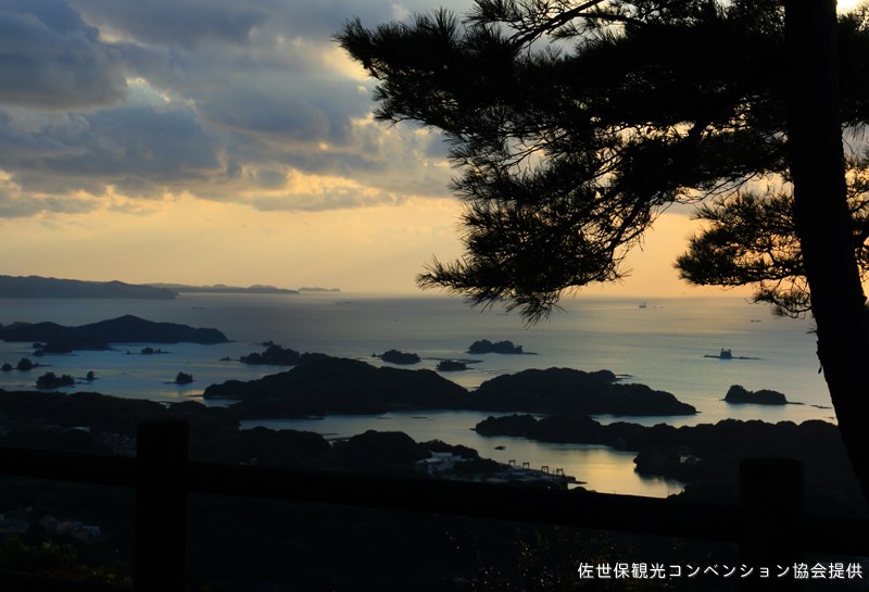 北側にはツツジの名所でもある「⻑串⼭(なぐしやま)公園」や、断崖絶壁からの眺望で北九⼗九島や平⼾も望める「冷⽔岳(ひやみずだけ)公園」、南部には、低い視点から⽴体的な島々を⾒学できる「船越(ふなこし)展望所」、⼤正時代に造られ最も歴史ある「鵜渡越(うどごえ)展望台」、九⼗九島のひとつ「⾼島」に位置する「⾼島番岳」は海側から九⼗九島の⾵景を楽します。