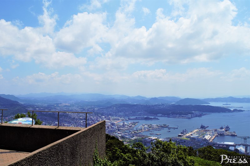 展望台の中では北東側に位置していて、佐世保港も⾒渡すことができます。
