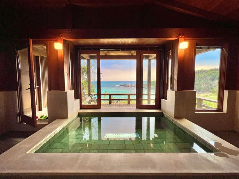 オーシャンフロントの大浴場やサウナも楽しめます。また、ヴィラにシェフを呼んで、多様なジャンルのコース料理をケータリングで楽しむことも。ラウンジには世界の離島のお酒が用意しており、すべてフリーフローで心ゆくまで楽しめるのも魅惑的です。最高の島体験を楽しめる、そんなすべてが集約したような場所です。