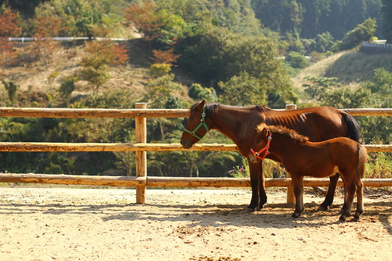 日本に最初に馬が訪れたのは、4~6世紀ごろ。東アジアの大陸を経由して、北部九州に渡ってきたのだと言われています。 対馬には739年には馬の存在が確認されている記録が残っています。対馬には、在来種として「対州馬」と呼ばれる馬がいます、 古墳時代頃に朝鮮半島より移送されてきたと考えられているのだそう。対州馬は、体高147センチメートル以下の「ポニー」に分類される、小柄な種類です。ですが、対馬は険しい山道が多かったので、坂道にもへこたれない強さが!蹄も丈夫で、農耕や運搬に活躍していたのだそう。小柄でずんぐりむっくりとした体型、温厚でフレンドリーな性格とカワイイ黒目で、癒やされること間違いなしです。あそうベイパークや目保呂ダム馬事公園で出会うことができます