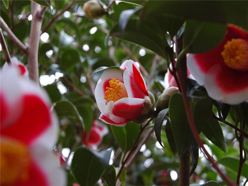 赤い花びらを白く縁取った艶やかで、とても印象的な五島が世界に誇る幻の椿"玉之浦"。1947年、故有川作五郎さんが見つけた美しい椿に、五島市の旧町名"玉之浦"と名が付けられたものです。1973年、長崎市で開かれた全国椿展に「玉之浦」が出展すると、その夢のような美しさで瞬く間にツバキ愛好者の知るところとなりました。しかし、その人気が裏目にも出てしまいます。心ない人たちが枝を折ったり根を切ったりした結果、五島の山にひっそりと立っていた母木は枯れ、現在は見ることができません。その一方で、その子どもたちは今も活躍中。いろんな咲き方で、世界中の人々の目を楽しませています。名前に"玉"や"タマ"とついているのが子孫です。