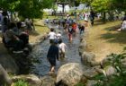 日本一の清流の一つにも選ばれた川。水生生物とのふれあいも楽しむことができる。小さい子どもも安心して遊べる、川の水を利用したプールもあり。