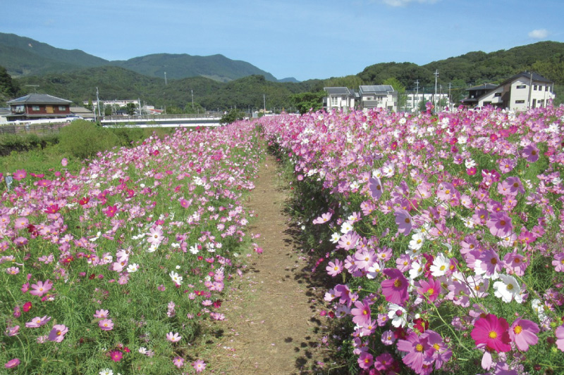 地元の町内会が景観づくりで「町おこし」をしようと31年ほど前に始めた〈コスモすまいる街道〉。