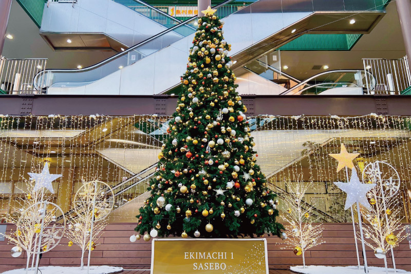 今年の〈えきマチ1丁目佐世保〉は、ステージに大きなクリスマスツリーが登場!