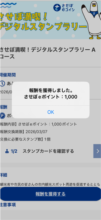 「させぼeポイント」最大7,000ポイントがもらえるスタンプラリーも同時開催