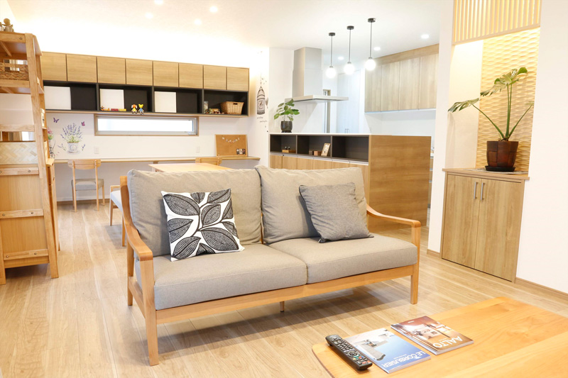 キッチンから家族が見渡せる、ママの家事動線を考えた間取り。
